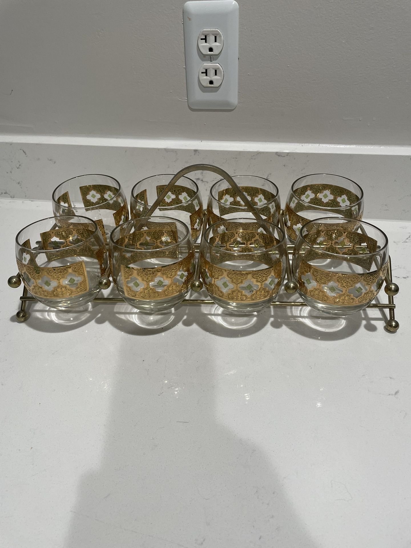 MCM - Culver Seville Roly Poly Glass Set Green & 22K Culver Barware (8ct)