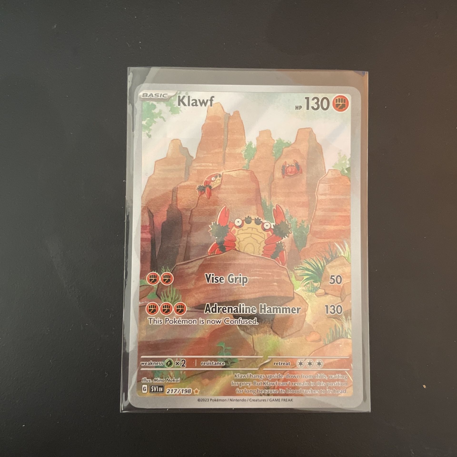 This Pokémon TCG card features Klawf with a stunning holographic finish, from the Scarlet & Violet Base Set. With a card number of 217/198, it is a highly sought-after addition to any collection. The card is classified as a Holo Rare and is perfect for any fan of the game. The card's attributes include Fighting for its MTG color, and it belongs to the collectible card games category. Despite being ungraded, it is in excellent condition and is sure to impress any collector. Don't miss out on the chance to add this amazing card to your collection!