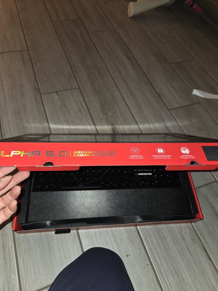 Monster Alpha 5.0 LED Mechanical Gaming Keyboard, RGB Backlit Keys, Anti-Ghosting, Programmable Lighting, Magnetic Palm Rest for PC Gaming
