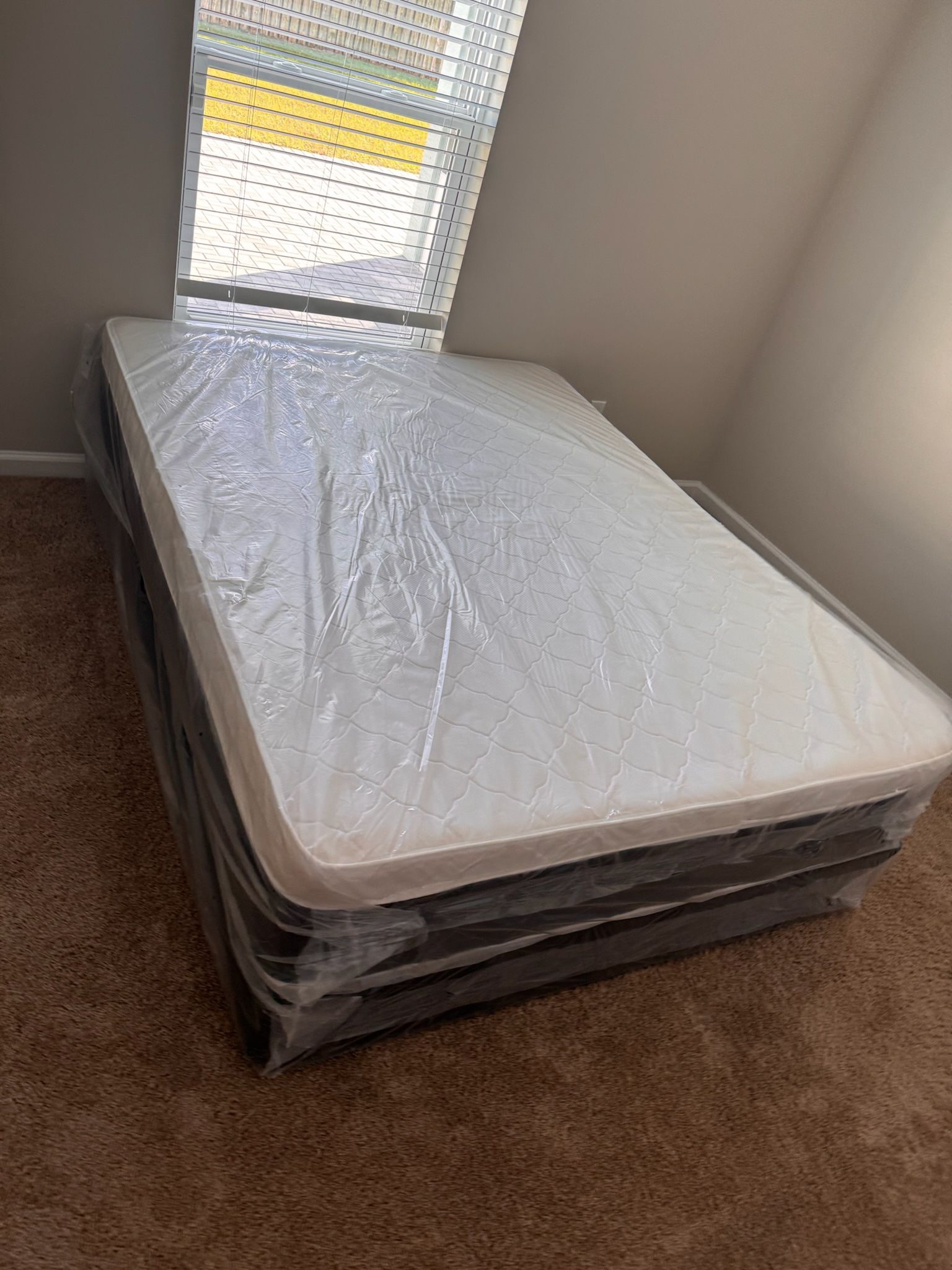 Queen mattress pillow top set with box spring (2pc - new)