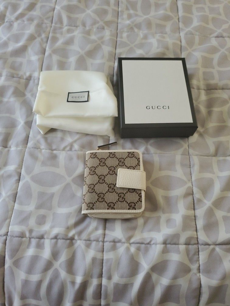 Gucci Compact Wallet Beige white With Box