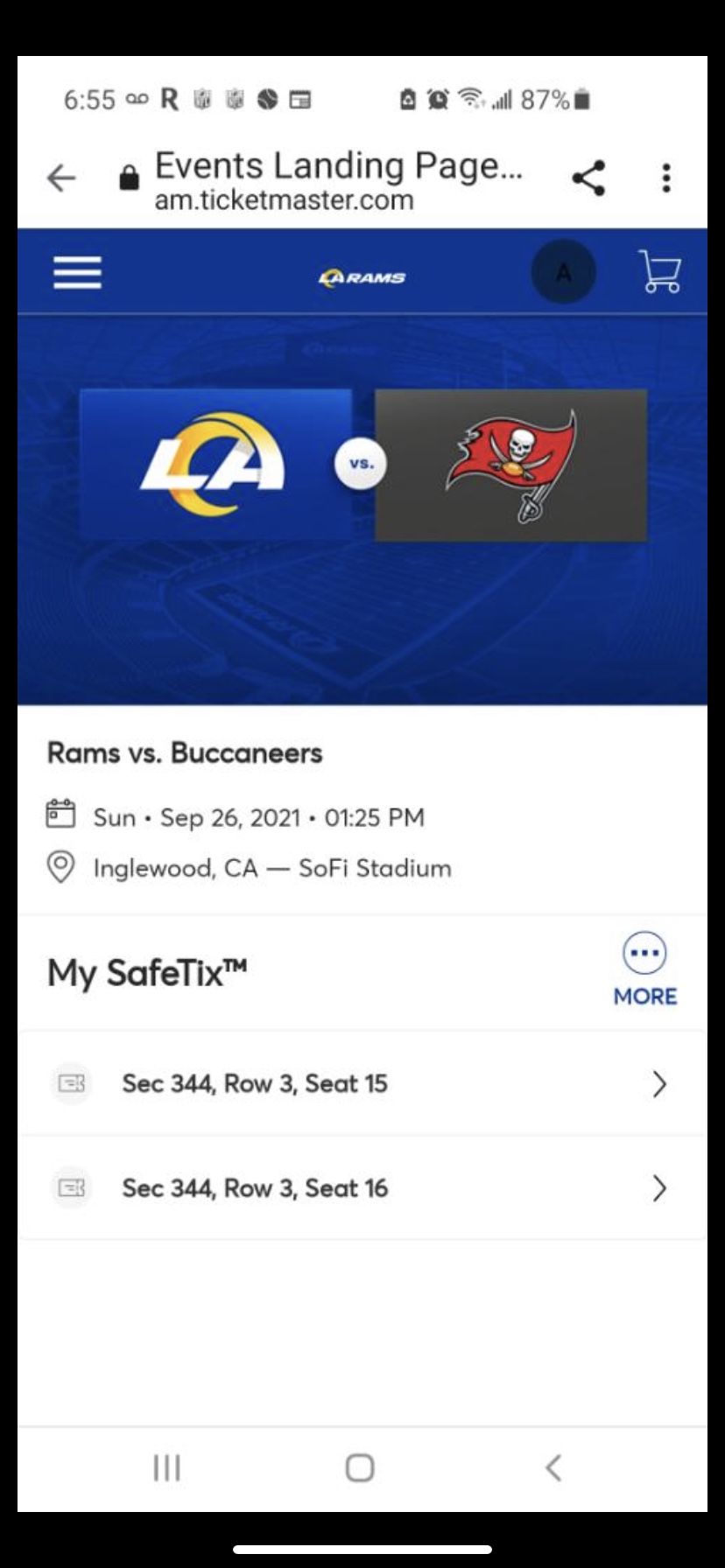 Great seats!!! Great view!!!! And close to concession stands bathrooms!! Once you enter the stadium the seats are 5 minutes away!! Easy access quick access. These tickets are close to everything!! Don’t miss out watching Tom Brady take in the rams!