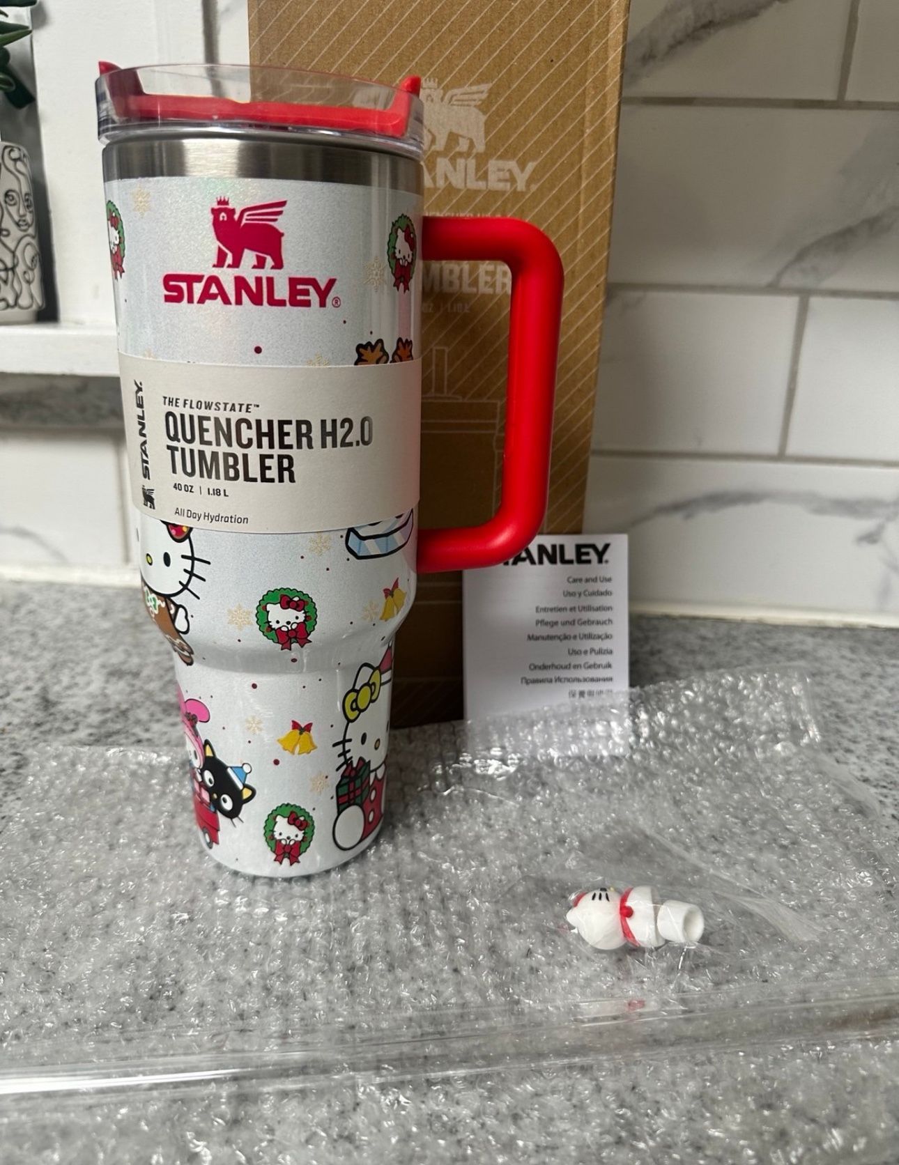 Brand new hello kitty white Glitter Christmas Stanley with hello kitty straw topper For hot and cold drinks 40oz