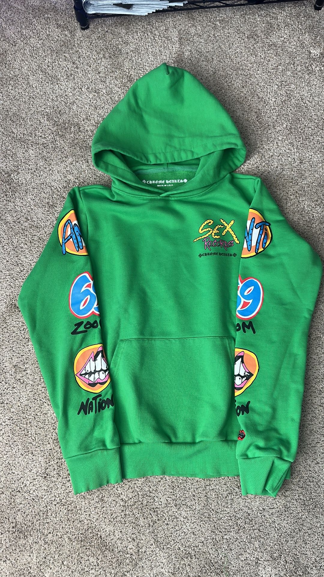 Green chrome hearts hoodie • DM for more info • Size Small ✅ • No Tags❌ • Original Bags, stitching, materials, top quality 🤝 •open for offers just hit me up📲 #luxury #streetwear