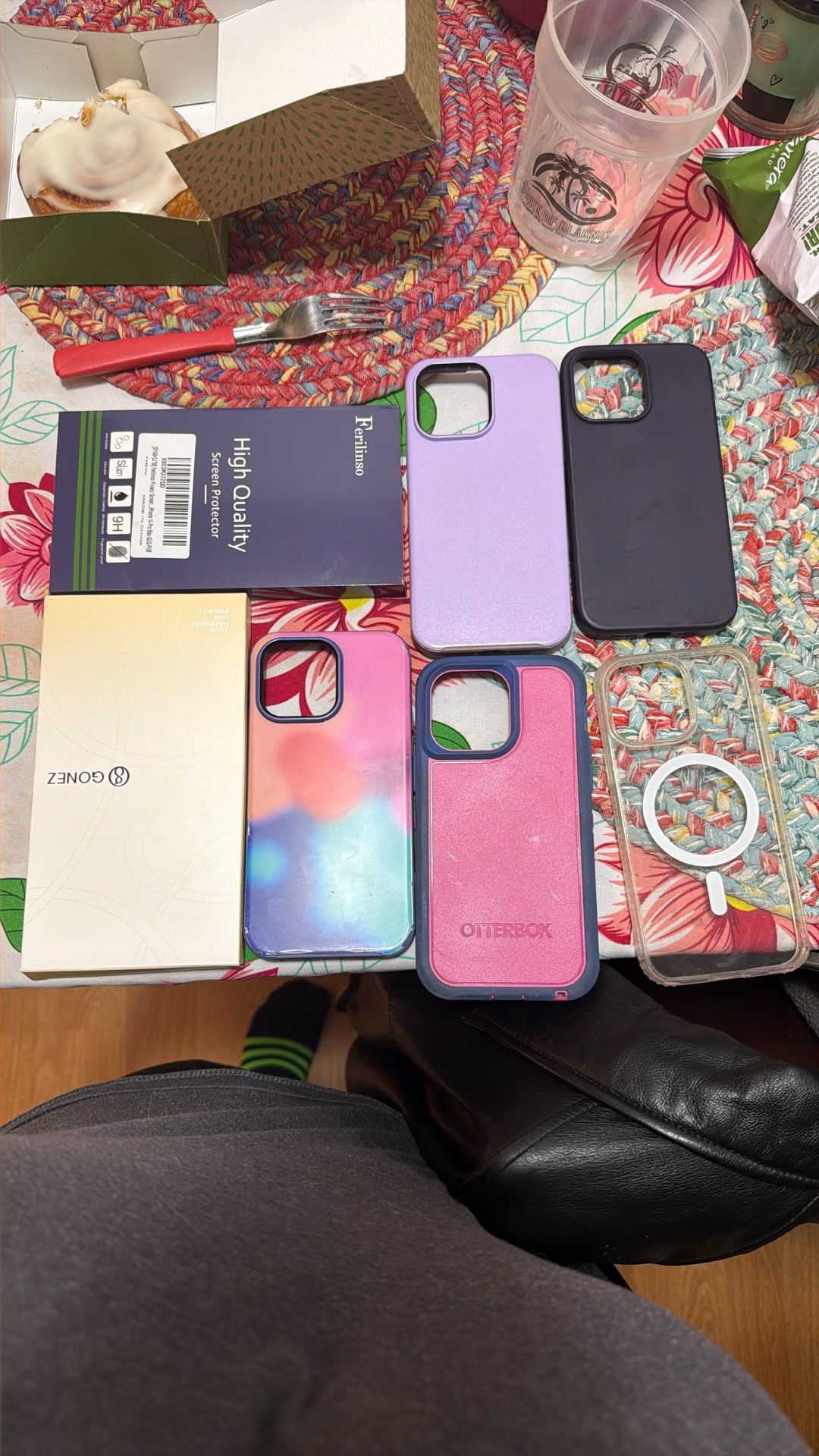 I got 5 cases 3 from Otterbox for the iPhone 14 Pro Max, 2 cases for it but clear one is Insignia brand and the deep purple is from Amazon. I have 2 different types of screen protector, one came with the Amazon case and the other I bought it and it is a privacy one, so total would be 4 screen protectors., 2 clear and 2 with privacy. I don’t need this anymore since I upgraded my phone.