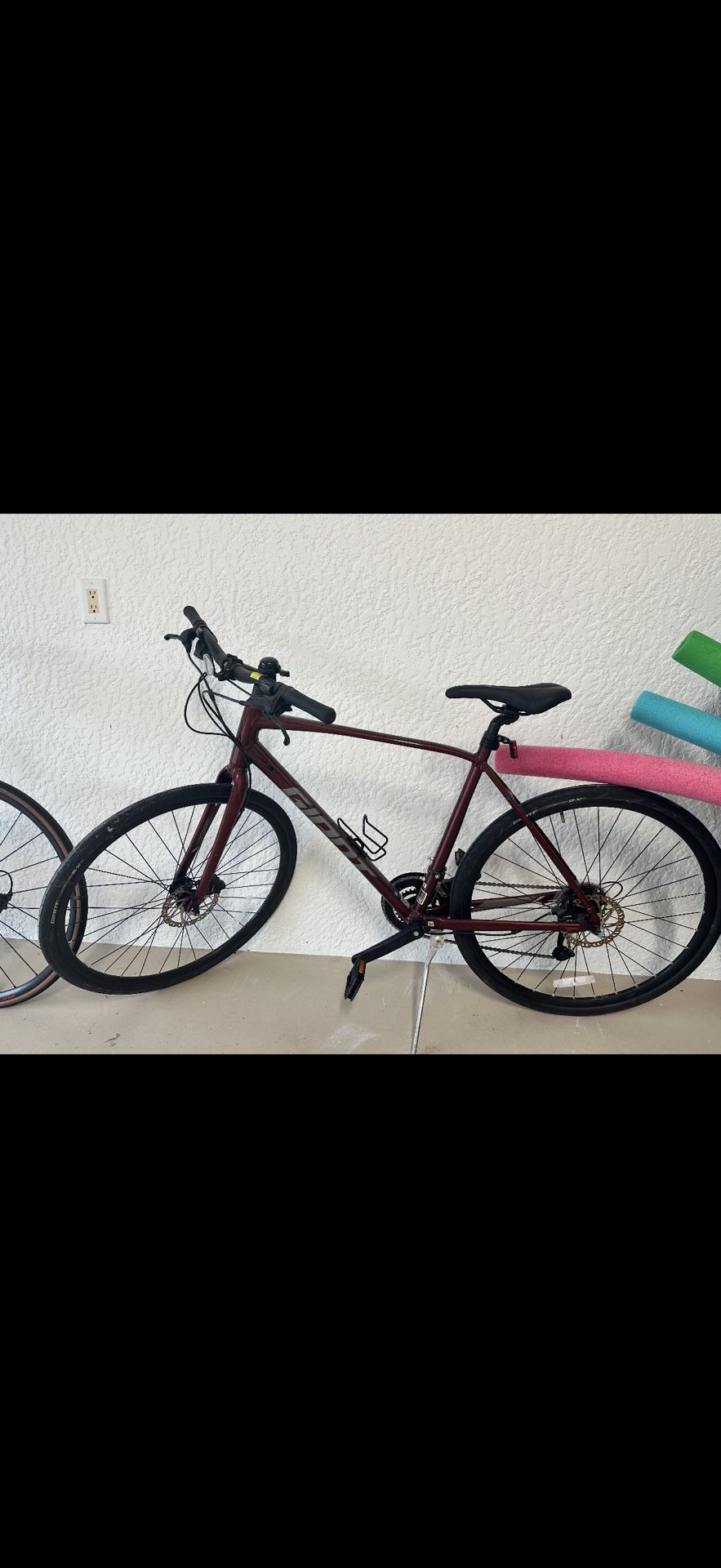 2022 large size. Barely used. Selling are second home and need to sale bike With its lightweight ALUXX aluminum frame, upright positioning and high-quality parts that give it a smooth, comfortable ride, the Escape Disc is totally versatile and totally fun to ride. It now features a high-quality composite fork and innovative D-Fuse seatpost. Both are great for smoothing out rough roads, absorbing shocks and vibrations, and giving you a smoother, more comfortable ride. The disc brakes deliver powerful braking performance in dry or wet conditions, and the 700c wheels with Giant EasyRide Tubeless tires (on select models) keep you rolling with speed, efficiency and a reduced risk of flats. As an added bonus, there’s clearance for larger tires up to 45mm in width, which makes it easier to ride rougher roads. It comes with integrated mounts, so you can customize your ride with racks or fenders. Whatever road or path you choose, Escape Disc is ready to roll. KEY PERFORMANCE FACTORS Balanced and efficient Lightweight ALUXX frame, fast-rolling 700c wheels, and confident upright positioning offer a balanced, efficient ride quality. Versatile and capable Powerful disc brakes and a wide range of gears help you increase your speed and tackle hills with more control. Rugged reliability Puncture-resistant tires feature the Giant EasyRide Tubeless system (on select models). Integrated rack mounts make it easier to carry your daily essentials or load up for weekend adventures