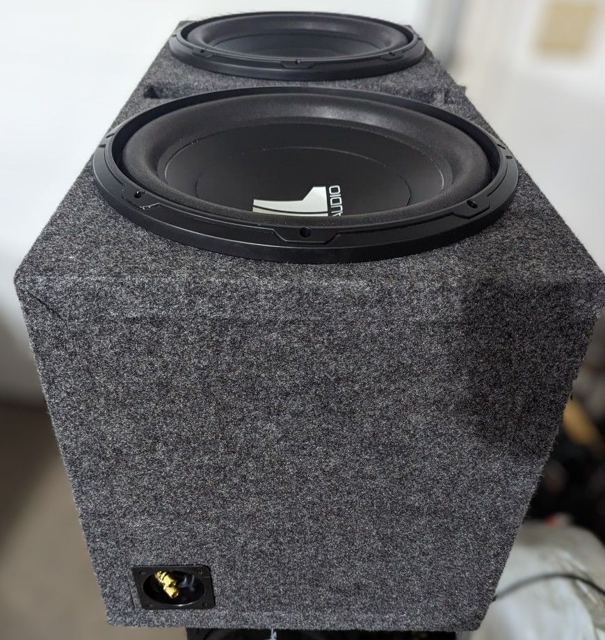 Newer JL audio W0v3 15-inch Subwoofer speakers (500 W, 4 Ω) inside of a new ported box. Was meant to go inside of my Jeep that is listed for sale but unfortunately will not fit. Selling for way less than what I paid.