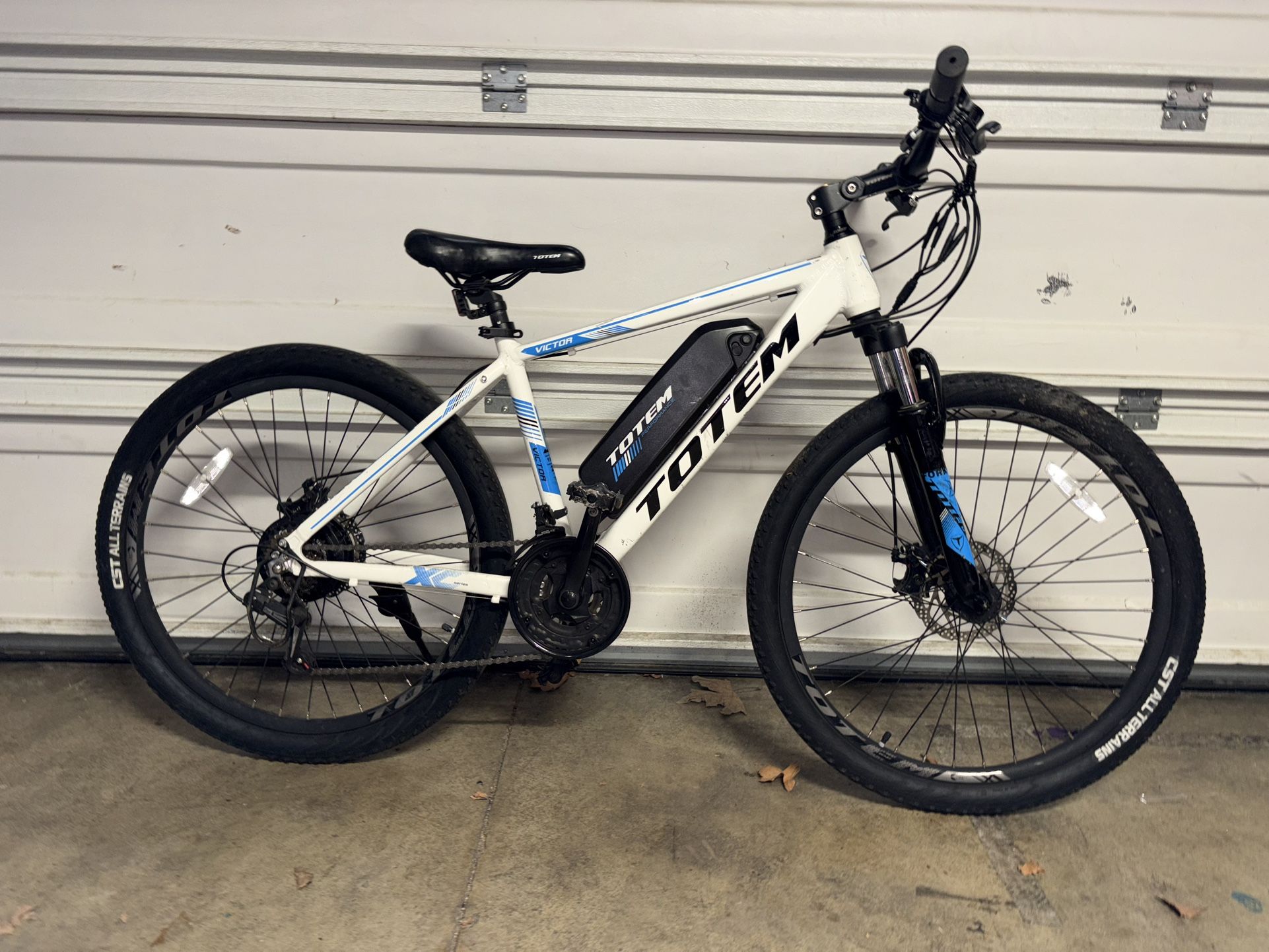 Totem Victor Electric Bike 26x 1.95 tires 20-40 mile range 250 Lbs weight capacity 20 mph speed Charger not included All bikes are bought from auction