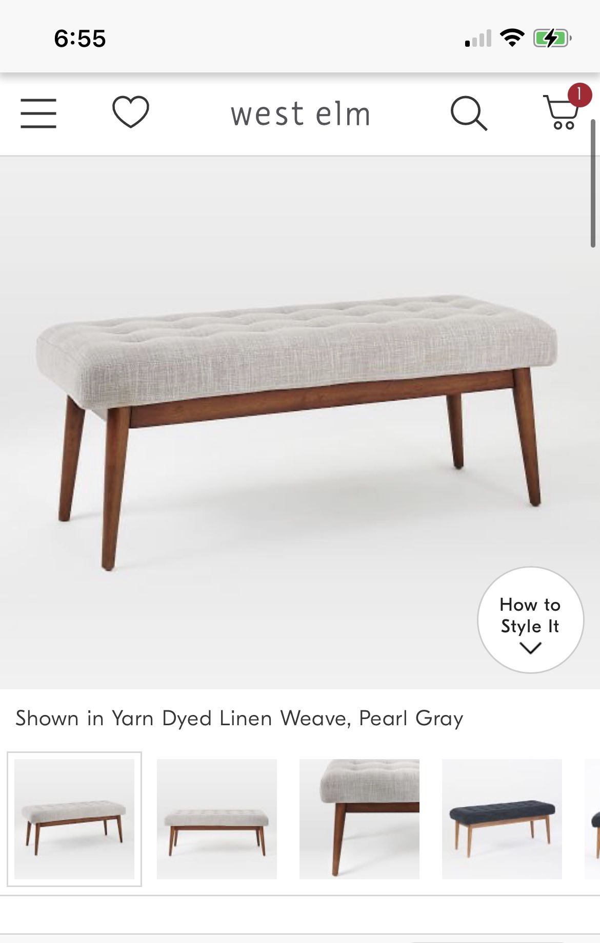 West Elm Mid-Century Bench paid $539 now $425!!! Color Yarn Dyed Linen Weave Pearl Gray https://offerup.co/faYXKzQFnY?$deeplink_path=/redirect/