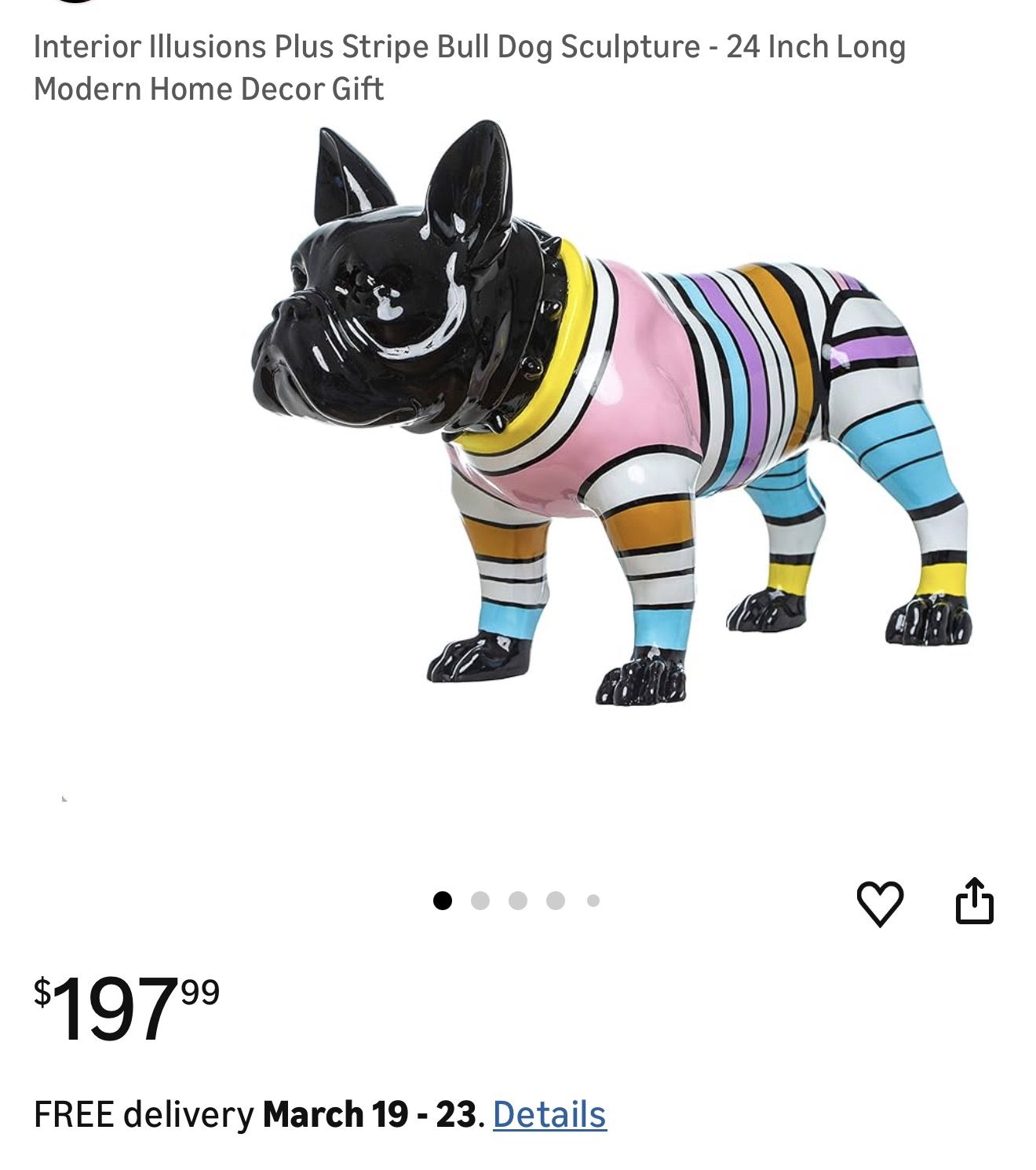 nterior Illusions Plus Stripe Bull Dog Sculpture - 24 Inch Long Modern Home Decor $89.99