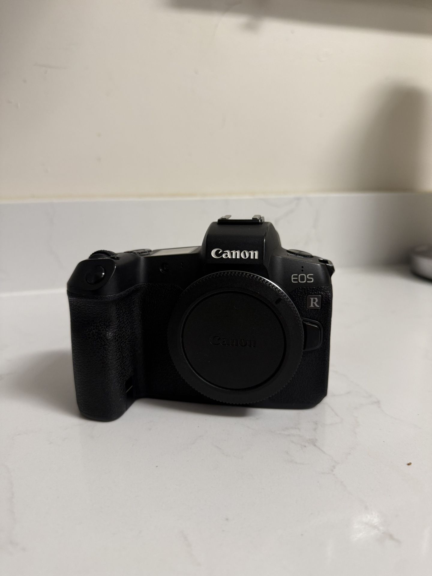 I’m selling my beloved Canon R due to recent upgrades. Body is in amazing shape and was used in good hands, the only thing: The touch bar functionality never worked for me but i’m pretty sure there’s a setting to turn it on, I just didn’t see the point. Touchscreen, Mini Setting Screen, Hotshoe, Viewfinder, Connectivity, and All Buttons work perfectly. Used for portraits and events! Features : 30.3 MP Full-Frame RF lens mount/ EF with adapters Oled viewfinder 4K Video 8FPS / 5 FPS With body Tracking Vlog Compatible screen movement DIGIC 8 Processor Comes with a Strap, Battery, Sensor Cover, and The Camera Body. $1000 OBO If you have any questions, like to see the cameras photos or in action feel free to ask away!