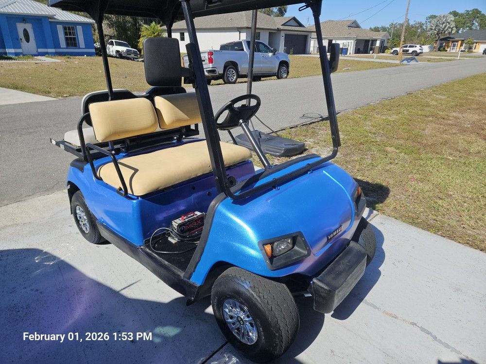 Yamaha G19 48V Golf Cart. Has Blue Metal Flake paint that changes to Purple in different light. Upgraded Navitas 440A Bluetooth Programmable Controller, Strong Batteries, $300 ModzMax Charger for constant plug in battery maintenance, LED Headlights and Tail Lights, Flip down rear Seat/Bed, Mirrors, Goes 19+. Asking $2850, May Trade. Thanks for Looking!