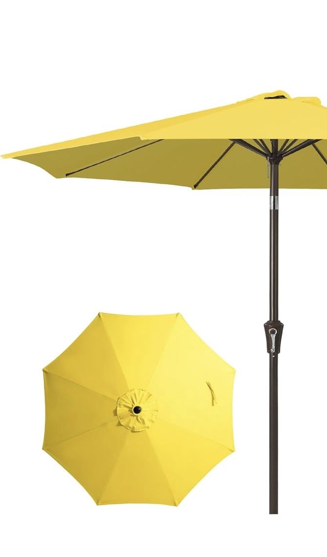 9' Outdoor Patio Umbrella with 8 Sturdy Ribs, Push Button Tilt and Crank - Yellow