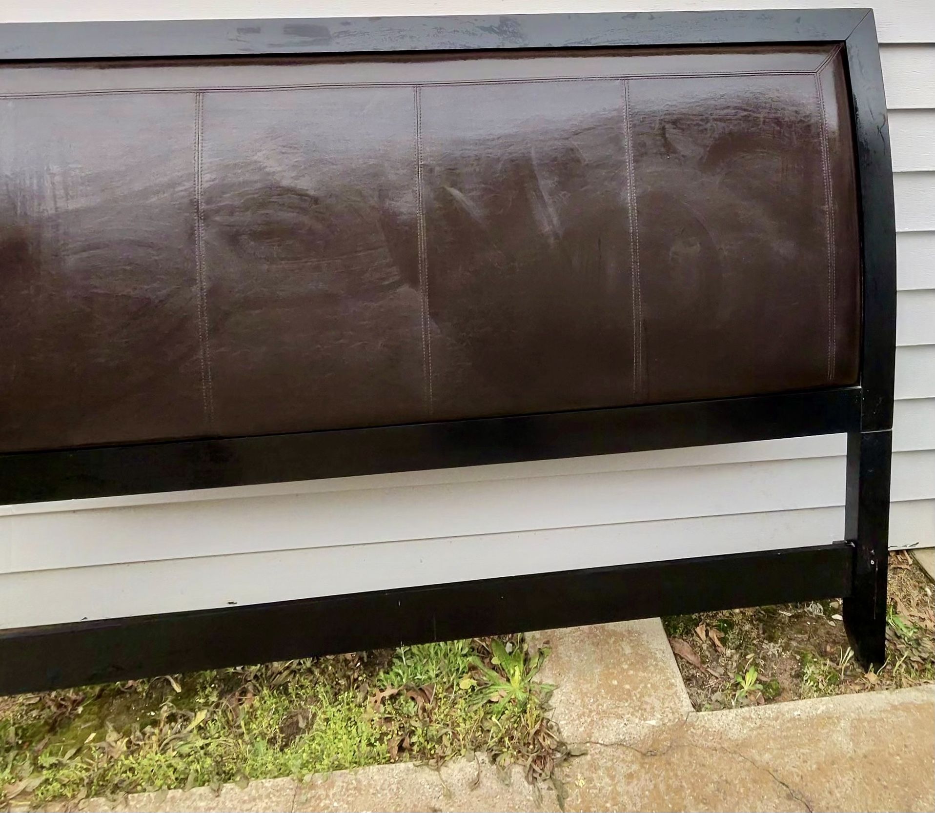 The king-size sleigh bed comes with a dresser and matching nightstands. However, one bottom drawer on the dresser requires repair. Additionally, we have wooden cross boards for the bed.