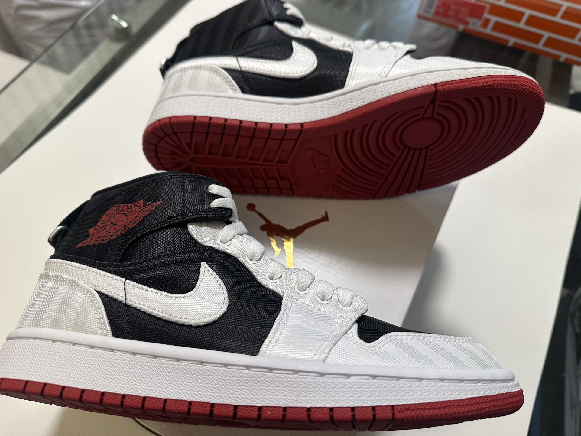 Brand new pair of Nike air Jordan 1 black/gym red women’s shoes. Size 7.5
