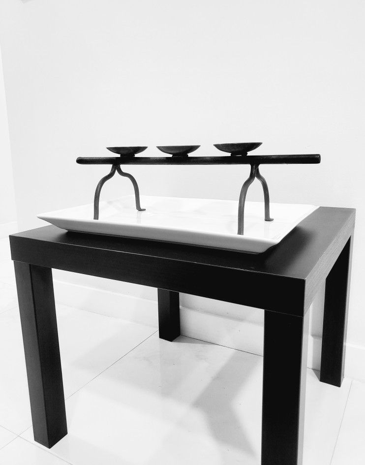 Black Wrought IRON CANDLE HOLDER - Holds 3 tapers / Miami 33182