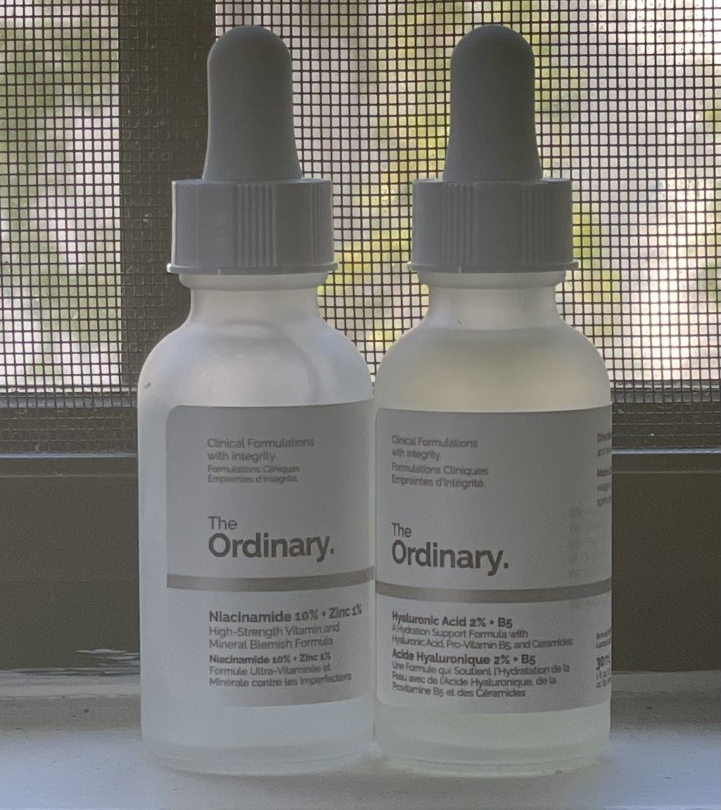 The Ordinary Niacinamide 10% + Zinc 1%: Reduces pore visibility and excess oils, improves signs congestion, and instantly boosts skin radiance The Ordinary Hyaluronic Acid 2% + B5 Hydrating Serum with Ceramides: Immediate plumping hydration, instantly smoother-feeling skin, promotes tighter feeling skin, and lightweight texture