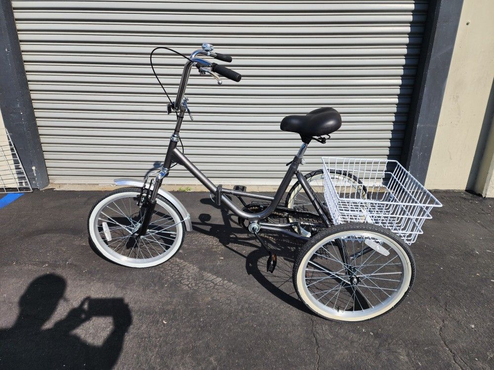 20" Foldable Tricycle With Single Speed Gray And Basket