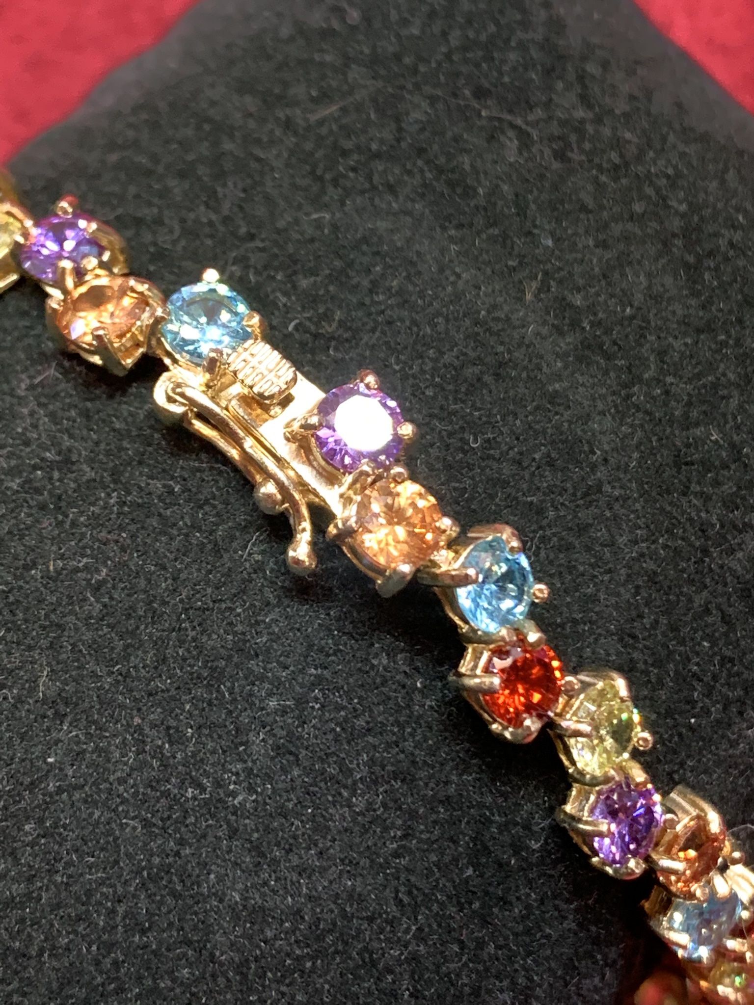 Beautiful Gold Over 925 Sterling Silver Multicolor Crystal Tennis Bracelet β 7.5" New condition Gold over genuine 925 sterling silver Features stunning multicolor crystals Measures 7 1/2 inches end to end π Pickup only near 15th Ave. & Joy Ranch Rd., Phoenix, AZ 85086 Perfect as a gift or to add sparkle to your own collection!