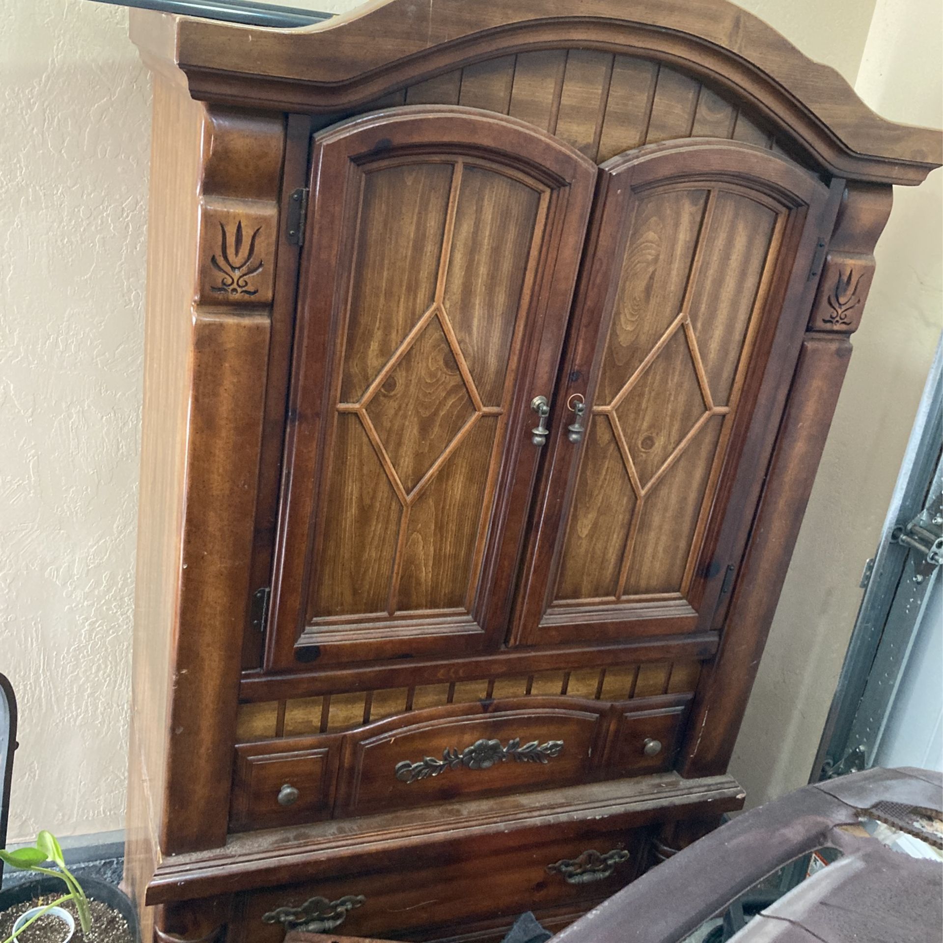 Just a little wear and tear but in great shape for the age, my grandma had it for well over 25 years. The piece thats missing in the picture is inside the dresser. Pick ups only, we can work out a price.