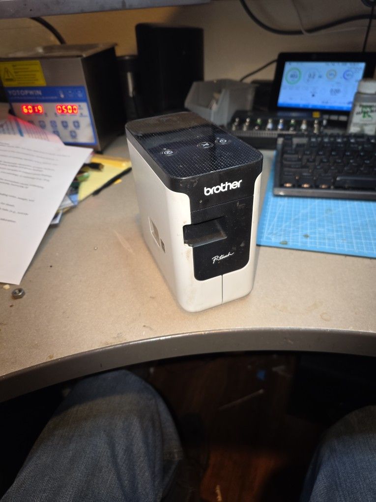 Brother PT-P700 label printer Uses P-Touch TZe tape. From 3/8 to 1 inch wide. https://offerup.com/redirect/?o=QnJvdGhlci1VU0EuY29tL3Byb2R1Y3RzL3B0cDcwMA==