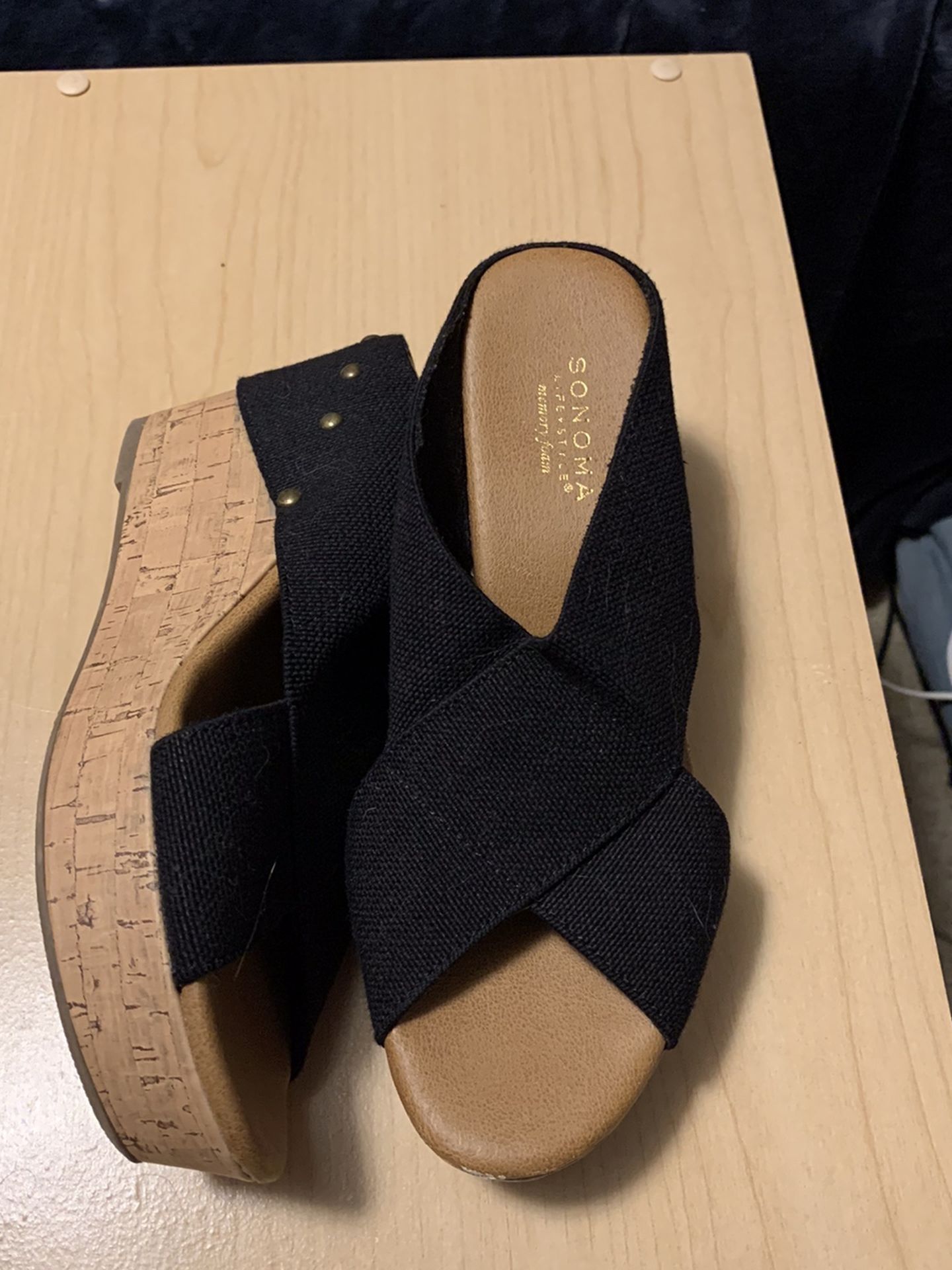 Wedge Sandels Sonoma Lifestyle. Wore once to go to an event left them in my closet. No wear on soles check pics.