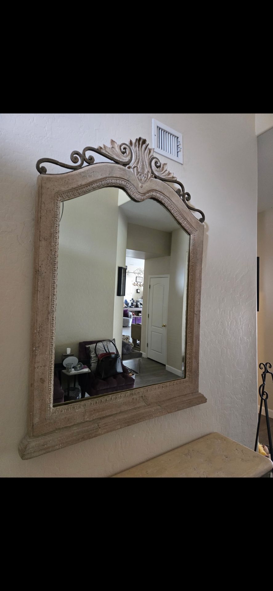 Beautiful Stone Framed Mirror. H- 60" W- 43.5" Selling Matching table as well- check other listings! Quite heavy- asking $150 OBO