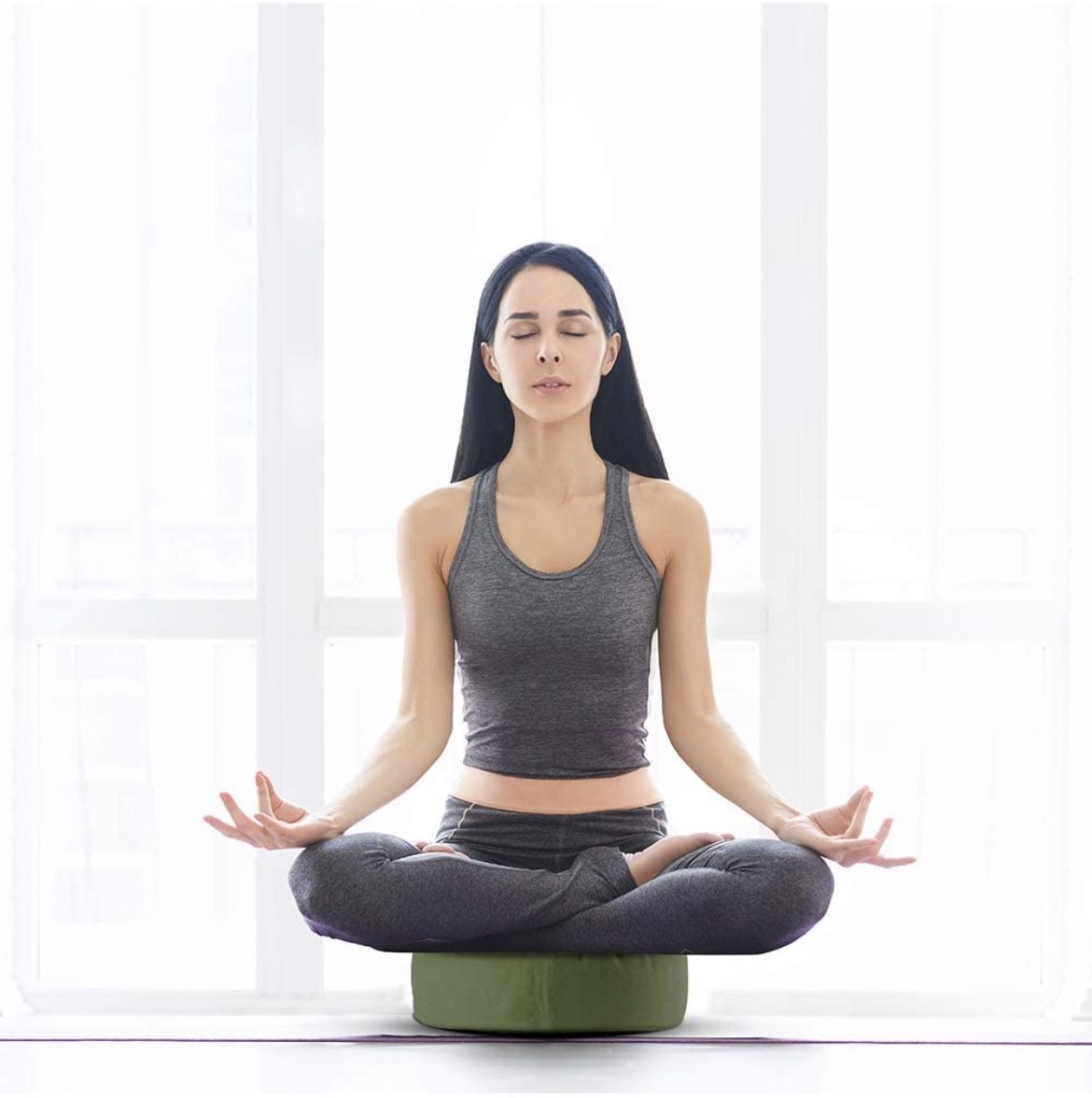 Brand new in packaging Machine washable EXTREMELY VERSATILE:Great for yoga practitioners alike, yoga poses, meditation, decorating your couch or bed, relaxing in your home, or even as a sleep aid for spine, neck, and limb support. CORRECT POSTURE: The multipurpose cushion can as yoga block to support your yoga poses, promotes proper posture and positioning. PROPER SUPPORT: Eases getting up from hard floors, relieves stress on joints and properly supports your spine. Helps to reduce the risk of numb limbs when meditating for moderate to long periods of time. MORE CONVENIENT: Full-zip cotton cover can be removable and machine-washable. Zipper access gives you the ability to customize inner cushion’s buckwheat hull filling to your desired comfort level. Features grab-and-go handles for easy portability. 12"diameter × 4.5