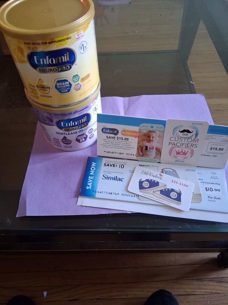 2 hands and $140 bucks in similac and enfamil coupons and a few gift cards for baby items pick up only