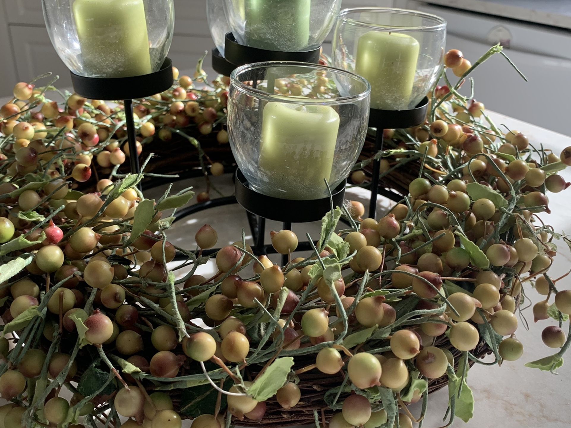 Beautiful centerpiece that can be use for every decor and every occasion. Just change the candles and the wreath and transform it to a Christmas, fall etc decor.