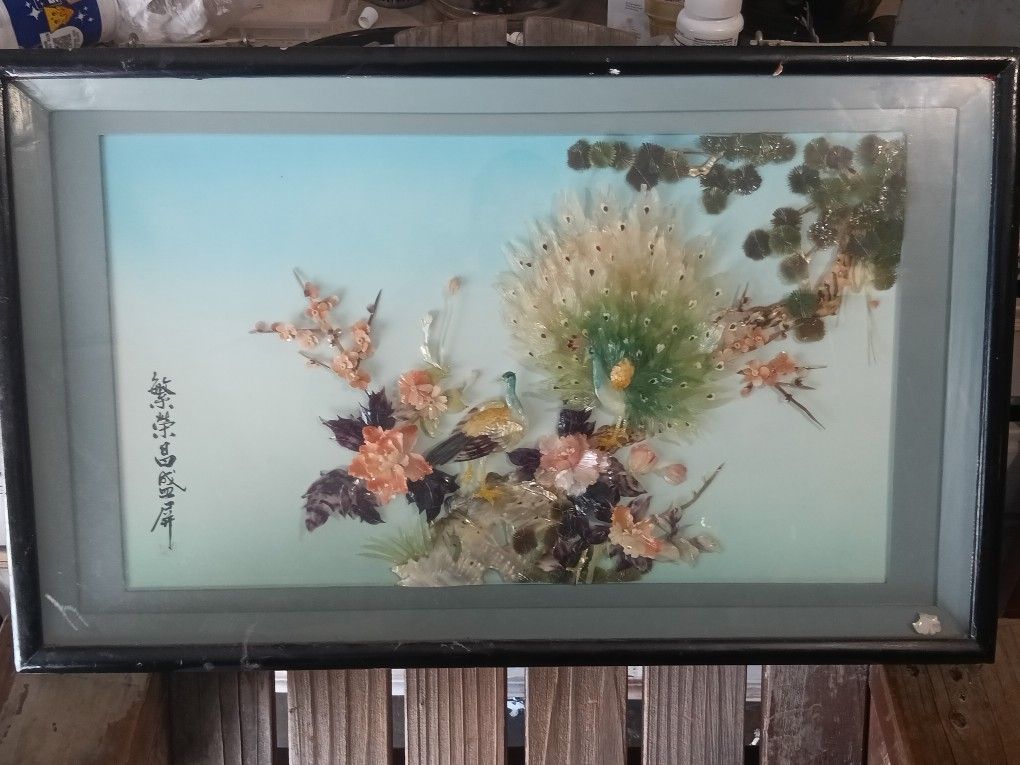 Vintage Chinese Shell Art In Shadow Box Frames