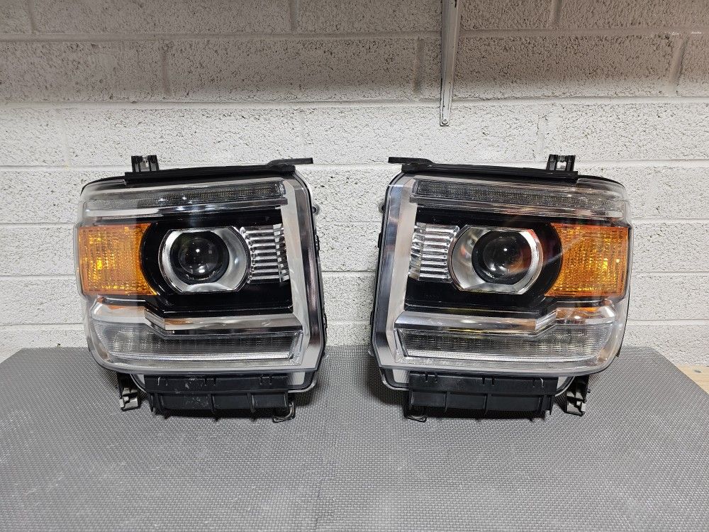 2014 to 1017 GMC Sierra 1500 & 2500 & 3500 edition OEM original headlights set halogen with LED edition restored in prestine condition! Will not sell separately! Price $650 CASH FIRM