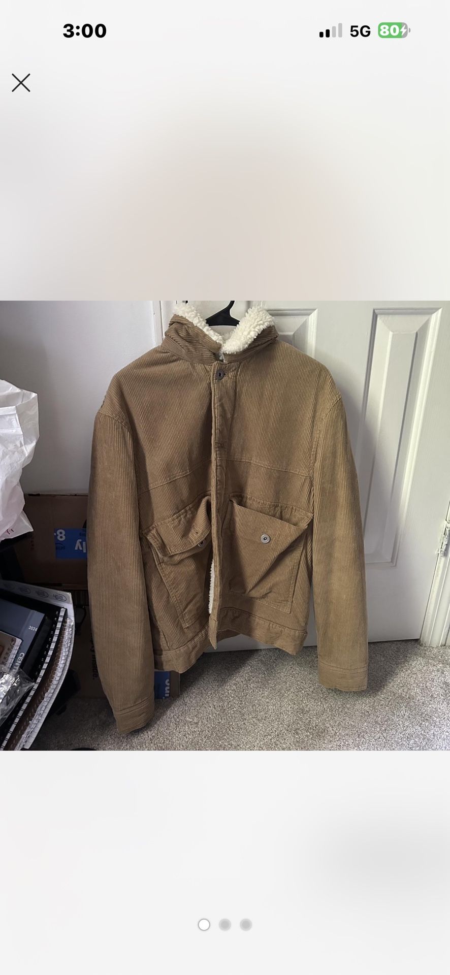 Tan corduroy H&M jacket with fur lining Size S #winterjacket