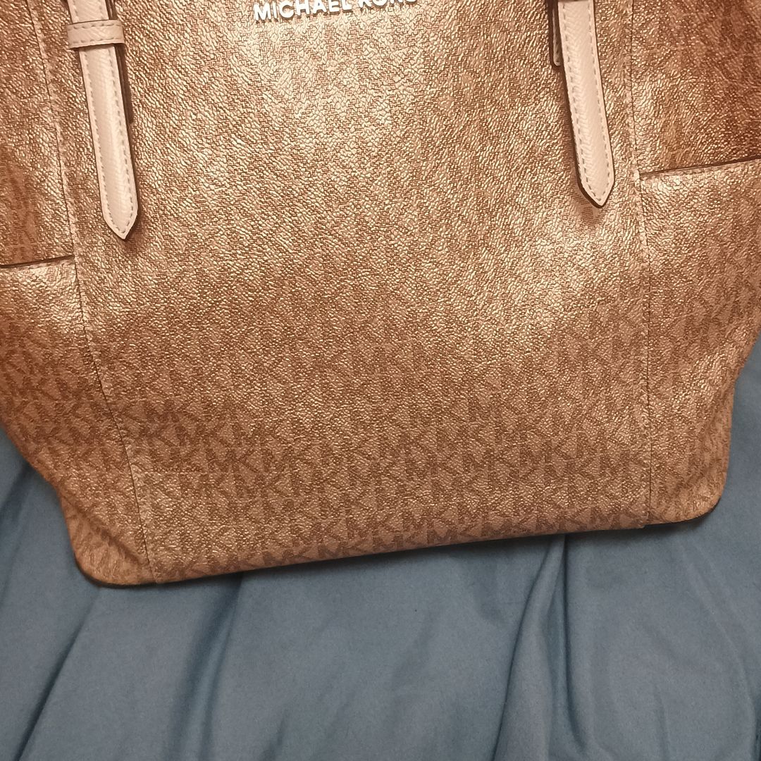 MK TOTE In the color rose gold champagne. Brand new without tags purchase from Marshalls few weeks ago I also have the dust bag that it came in No marks on it no anything on it it's in perfect condition come from a pet-free smoke-free home meet up near Kent area or pick up from my place in Kent can possibly meet halfway if need be. It was purchased at Marshalls for $180 I'm asking for $75 Width: 15.5 inches Height: 10 inches Depth: 4.5 inches Handle Drop: 10.5 inches (the space between the top of the bag and the top of the handle)