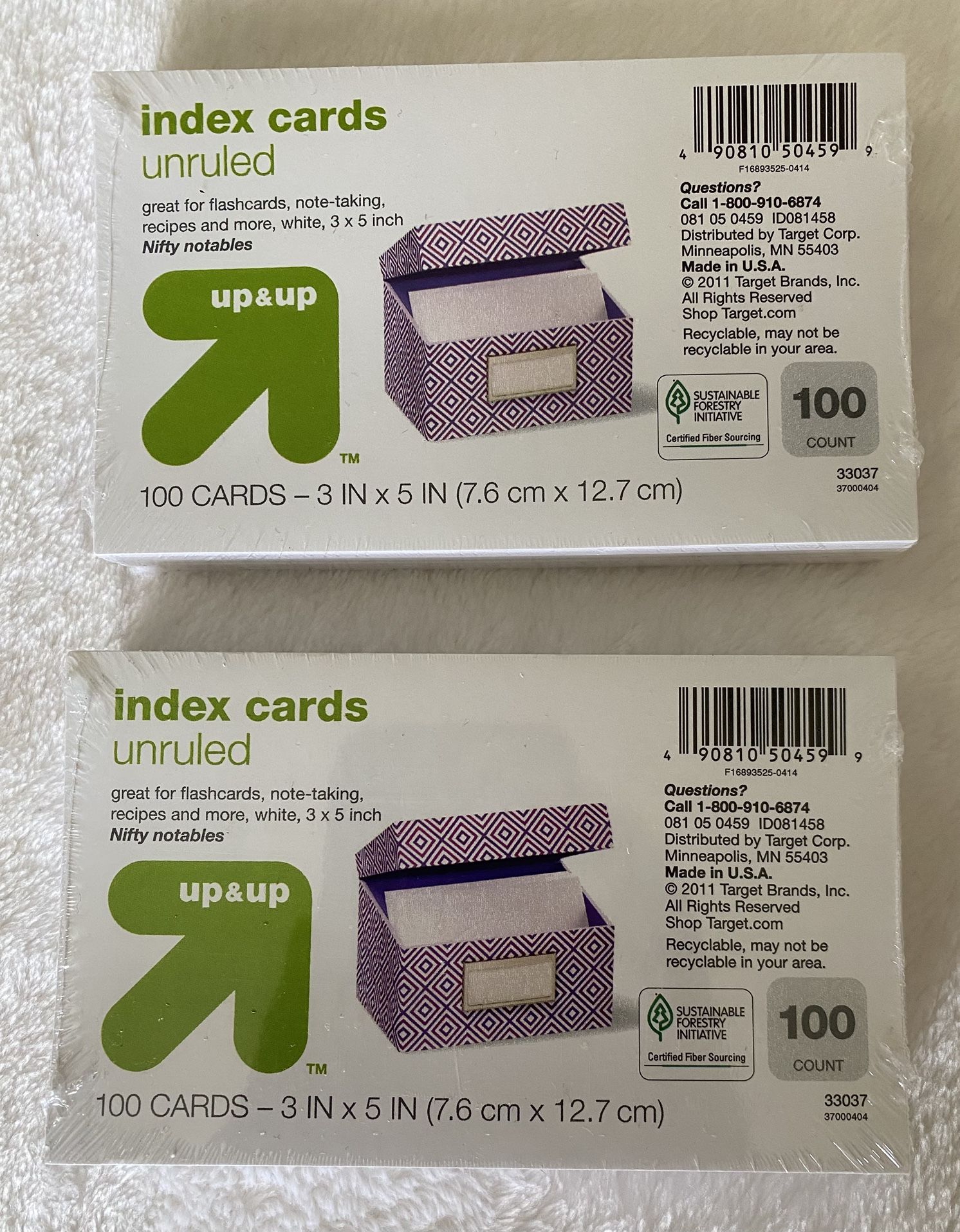 New. Unruled Index Card, 2 pc