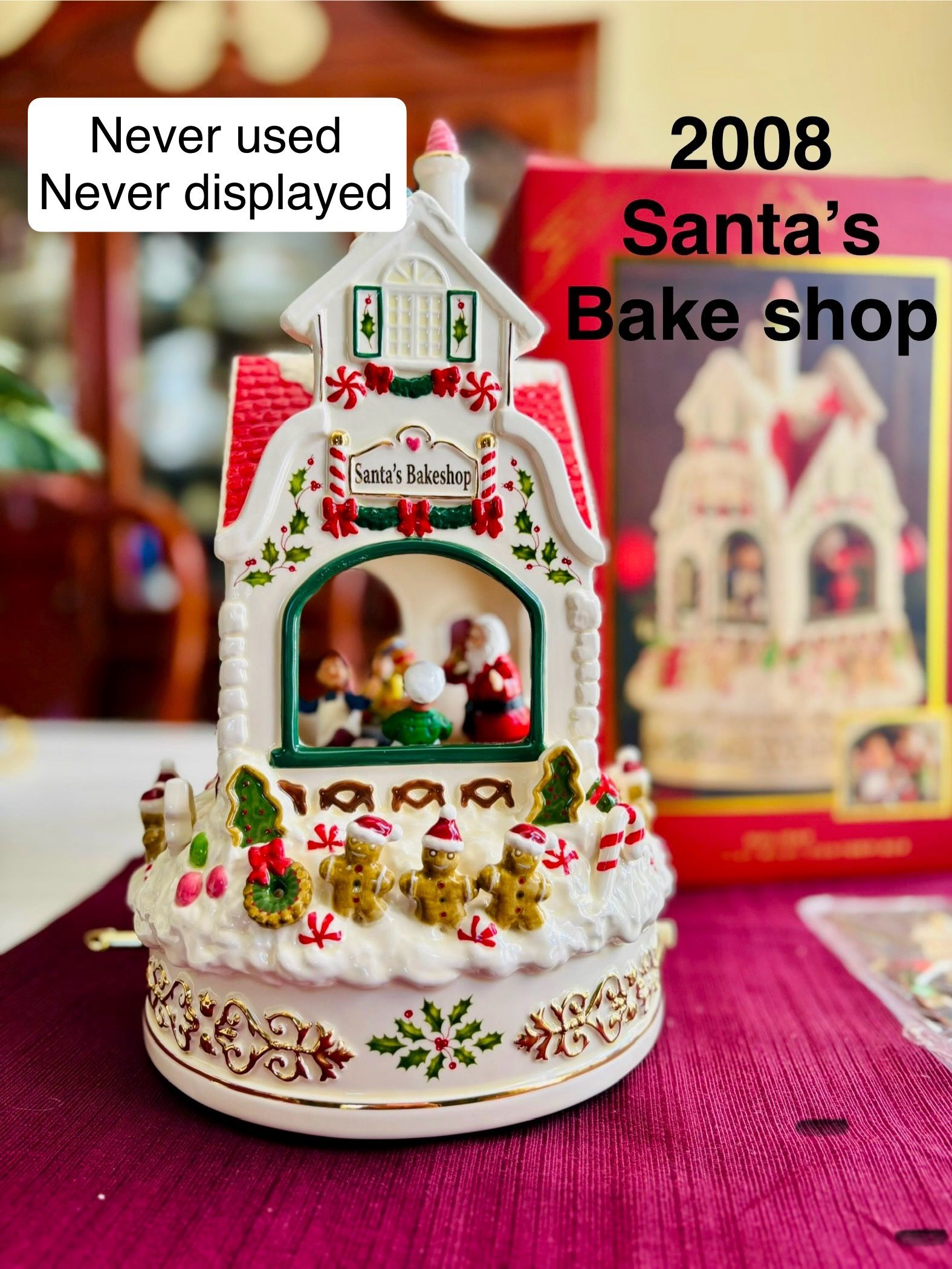 2008 Santa’s Bake Shop Lenox Christmas Centerpiece Decor with Gingerbread people and gumdrops, NEW