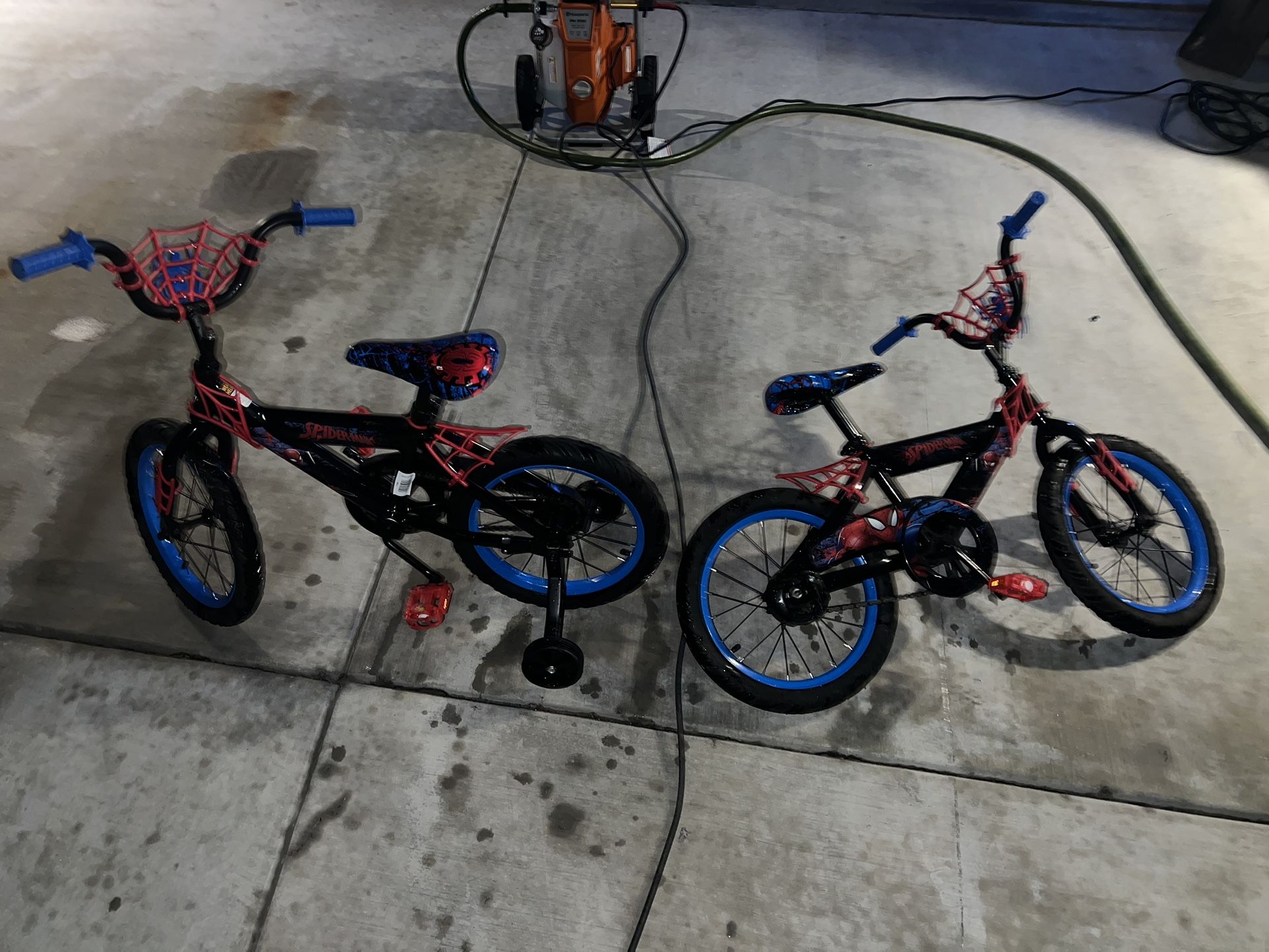 Spiderman bikes , kids rode them twice. Brand new one has training wheels other does not
