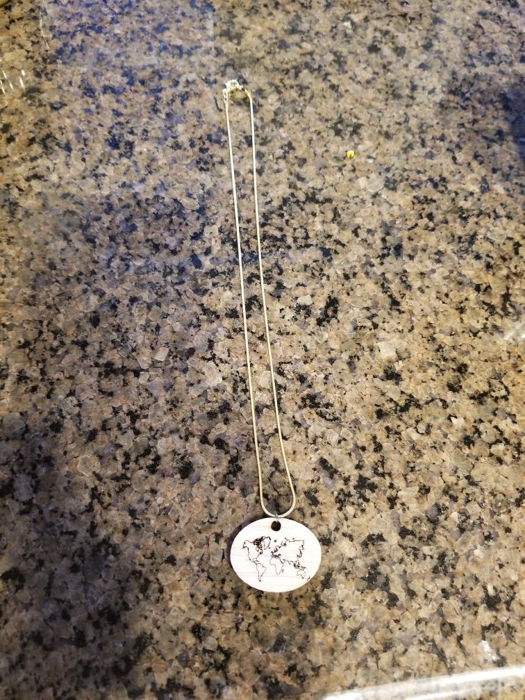 Laser Engraved World Map Pendant Necklace