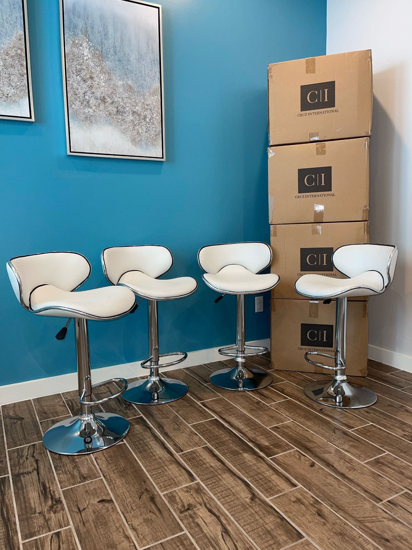 New 4 White Bar Stools