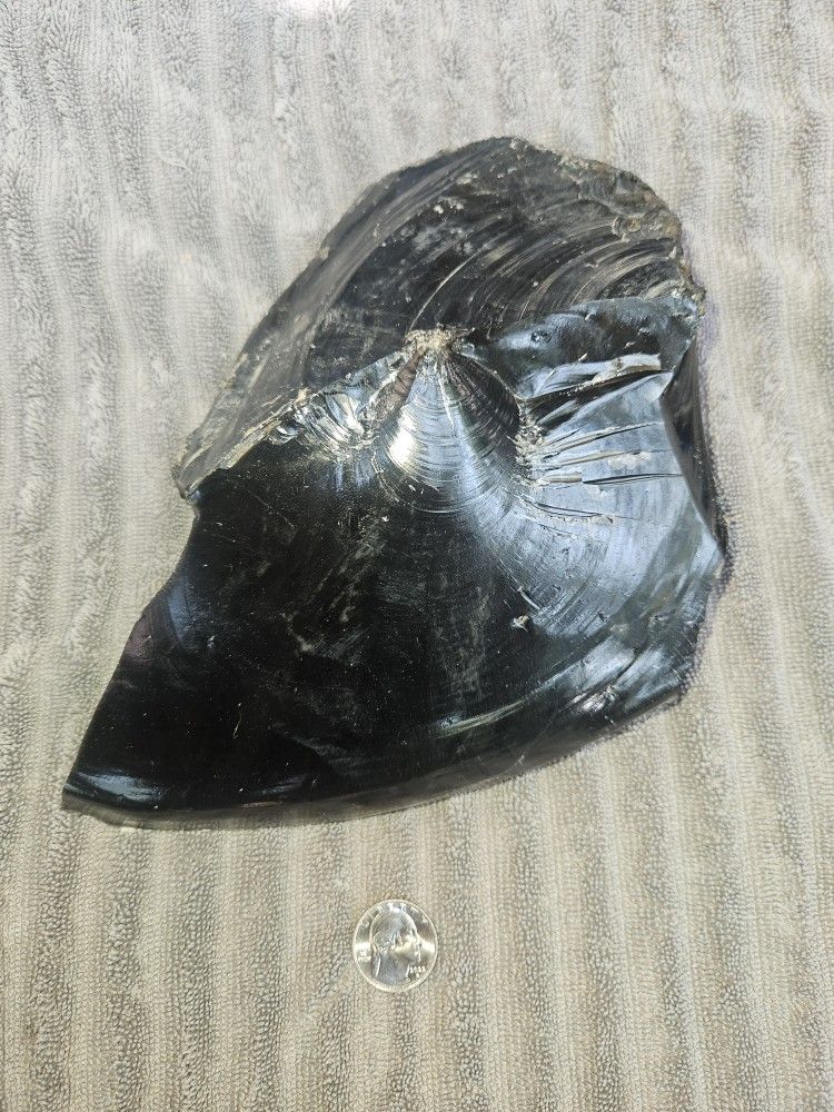 Piece of pure obsidian. Great addition to your rocks and minerals collection. Quarter shown for scale. $20 Cash, Venmo, Cash App, Zelle Larger pieces available if interested.