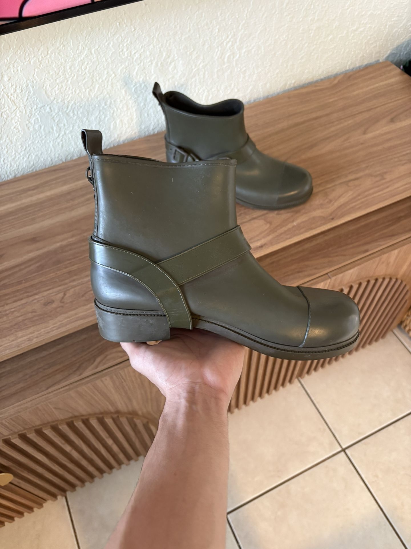 Moto rain bootie Military green Woman’s size 10 Men’s size 8.5 Vintage rain boots no box