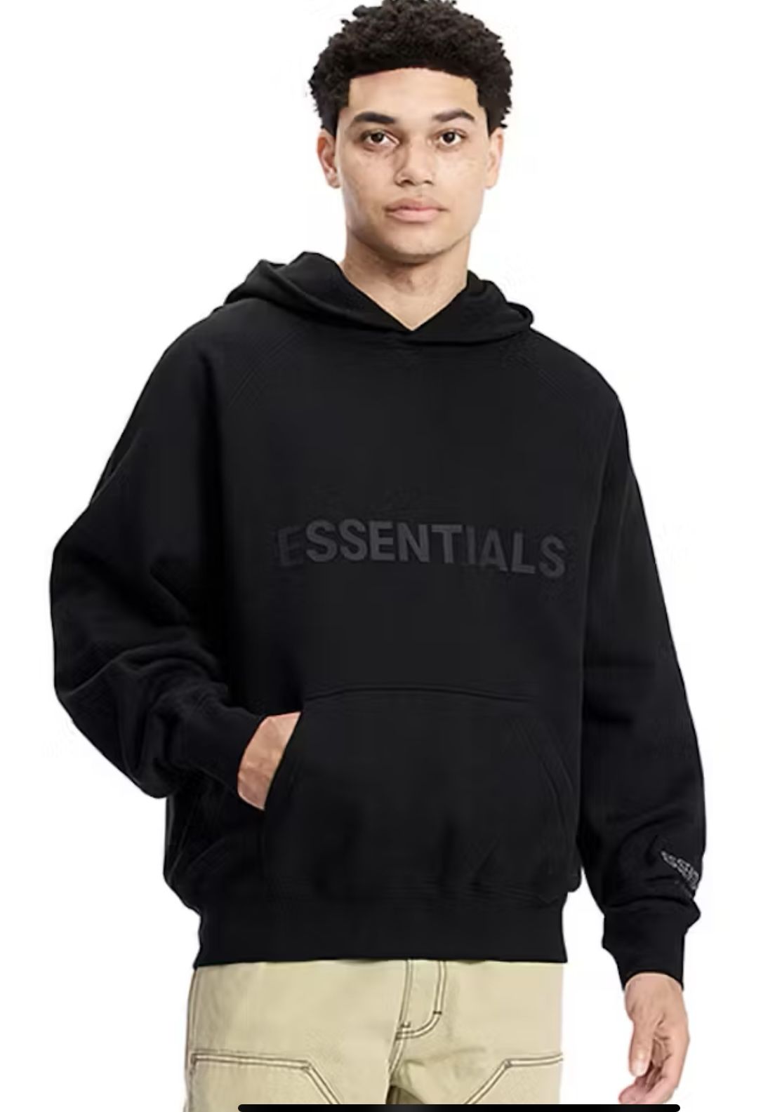 Brand new authentic Fear Of God Essentials Pullover Hoodie Appliqué Logo - Dark Slate/Stretch Limo Black Size: Medium Color: Black