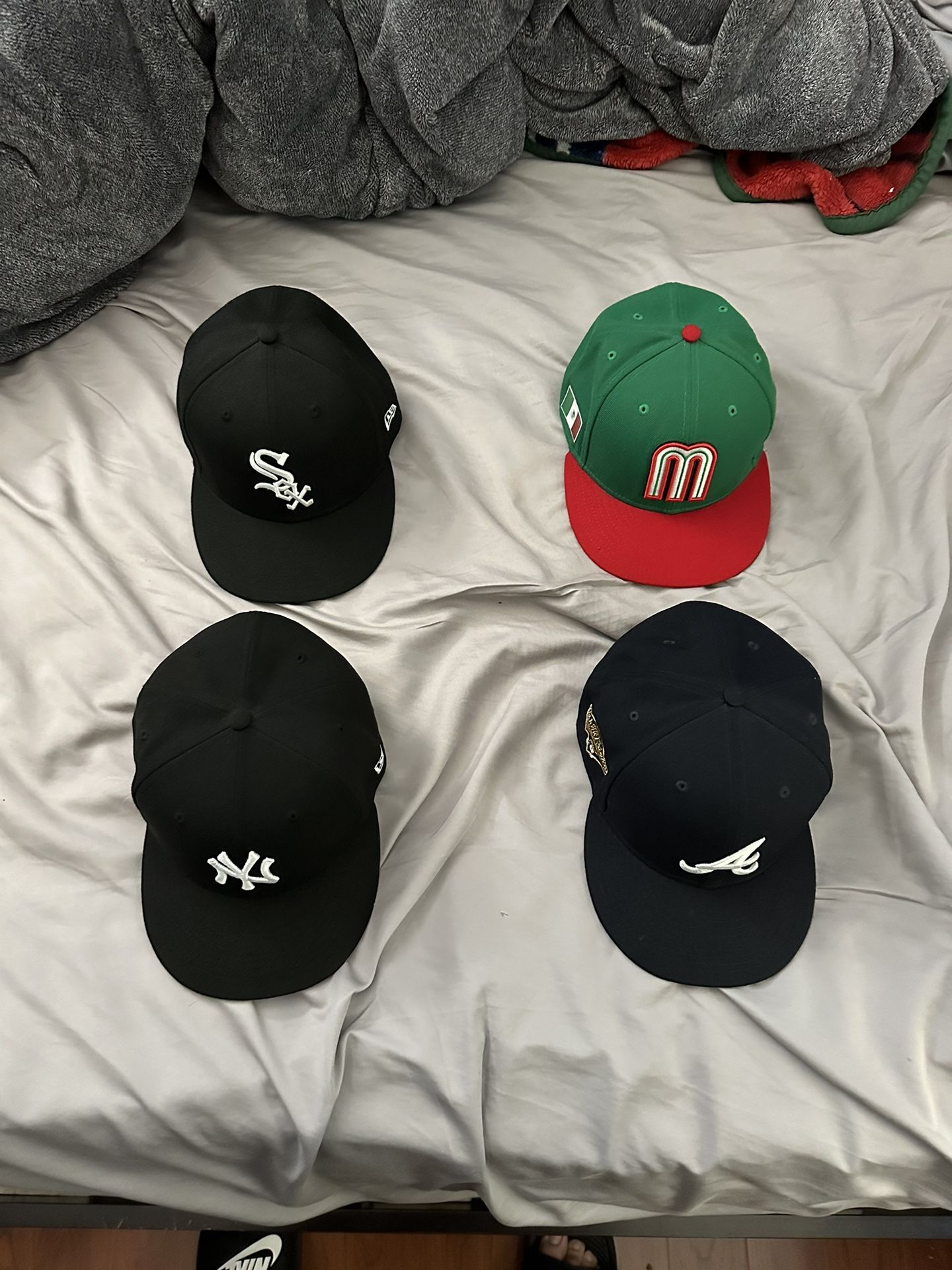 *ALL HATS USED ONCE OR TWICE ONLY* White Sox Hat - 7 5/8 Black/White - $40 Yankees Hat - 7 5/8 - Black/White - $40 Braves Hat - 7 5/8 - Navy/ White - $40 Mexico Hat - 7 3/4 - Green/White/Red - $40
