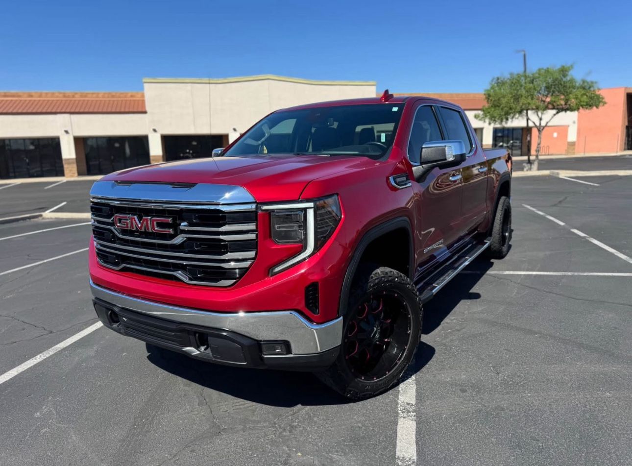 For Sale: 2023 GMC Sierra 1500 SLT Year & Model: 2023 GMC Sierra 1500 SLT. Engine: 5.3L V8. Transmission: Automatic, Rear-Wheel Drive. Mileage: 41,169 miles. Exterior Color: Red. Salvage title due to front-left damage, professionally repaired. Features: Advanced Infotainment System with Touchscreen Display Apple CarPlay and Android Auto Bluetooth Connectivity Power Windows and Power Door Locks Dual-Zone Automatic Climate Control Premium Audio System Keyless Entry and Push-Button Start Leather Seats and Heated Front Seats Aftermarket Wheels and Tires
