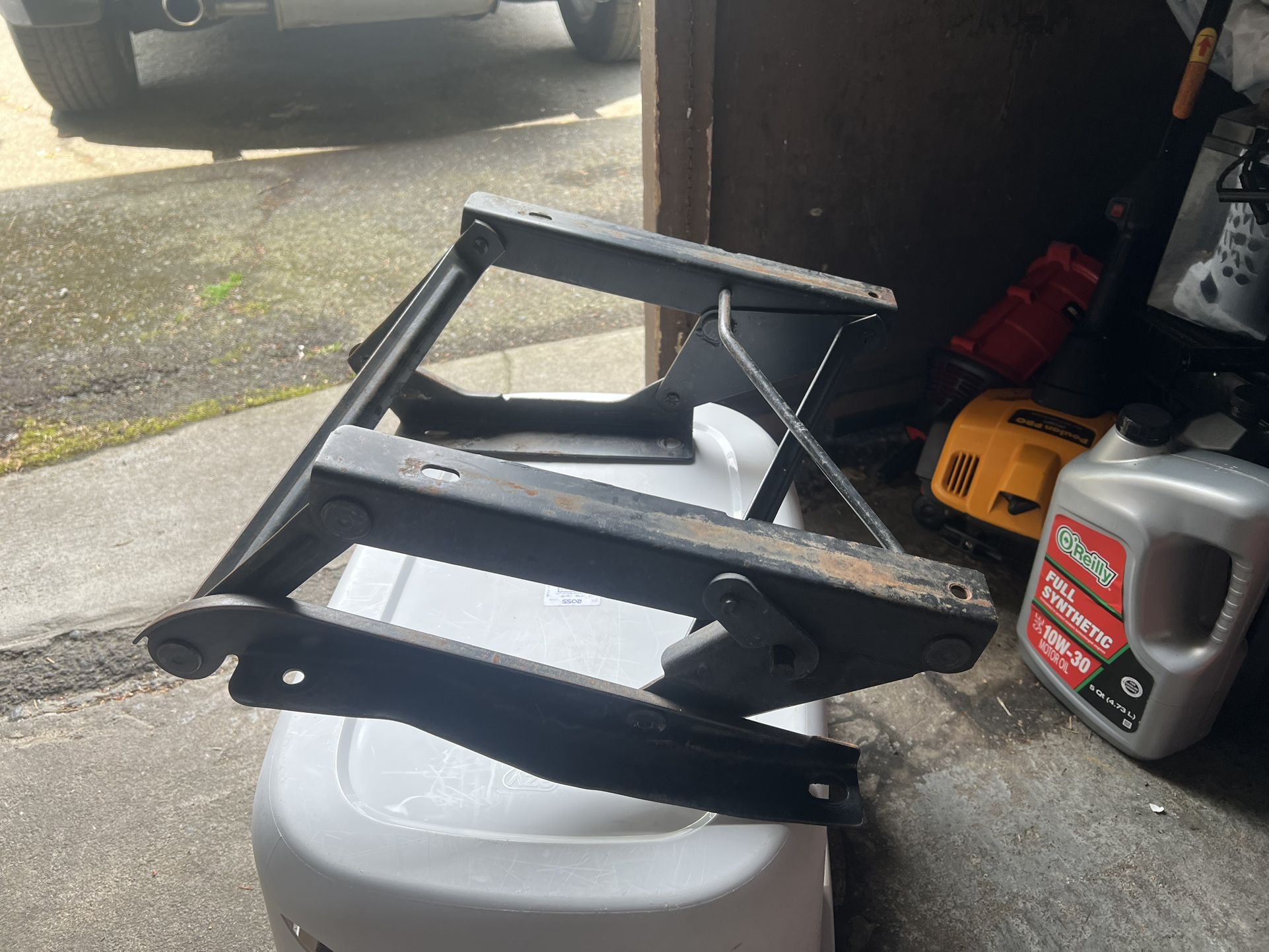 Passenger Seating bracket for The Jeep Wrangler YJ, I recently got a seating replacement for my jeep that came with its own bracket so I am selling my old one! It’s a really good one! With no problems… just downside is that there is a small amount of rust, other than that it’s a good bracket if your looking for one!! I am available in the morning before 12:30PM as I have work, so let me know the time and when we can meet, I am selling this for 90$