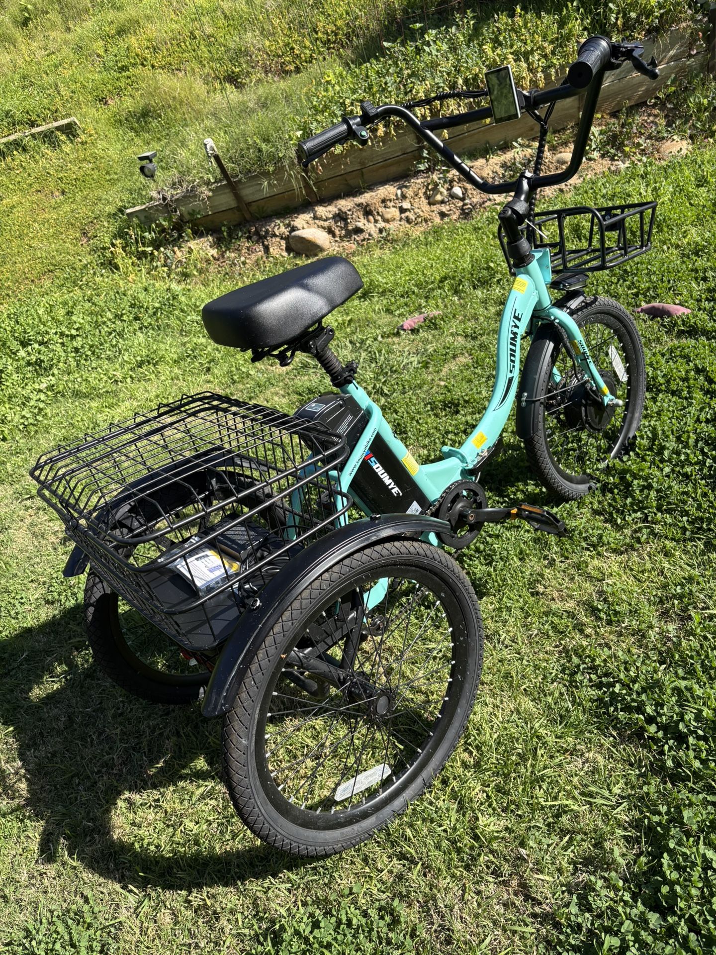 https://offerup.co/faYXKzQFnY?$deeplink_path=/redirect/ Soumye Electric Tricycle for Adults,20" Folding Electric Trike,3 Wheels Electric Bicycle Bikes, 350W Step-Thru Etrike with 374WH Removable Battery and Large Basket for Women Men. SOUMYE E-BIKE SPECIFICATION Color Green Electric Assist Type Pedal Assist System Frame Material Carbon Steel Height 57 Inches Material Carbon Steel Power 374 Watt Hours Removable Battery】The electric tricycle features a certified battery, designed for ultimate safety and performance. This battery includes advanced protection against over-temperature, over-voltage, and over-charging, ensuring dependable performance and an extended lifespan. Enjoy a significantly longer battery life—up to 30+ miles on a single charge and 40 miles in PAS mode and 20% longer than standard batteries at 36V. 【350W Brushless Motor】Enjoy a smooth and comfortable ride with the 350W brushless motor (peak 540W) of our folding electric trike. Designed for everyday use, this front hub motor ensures reliable and efficient performance, making your daily commutes and leisurely rides more enjoyable. With a top speed of 15.5 MPH, it enhances maneuverability and control, providing an exceptional riding experience whether you're navigating city streets or exploring your favorite paths. 【3 Riding Modes】Discover three distinct riding experiences with our electric tricycle. Whether you prefer the convenience of a throttle-powered etrike, the support of a power-assisting tricycle, or the traditional feel of a normal tricycle, our product adapts to your needs. The Soumye innovated large LCD display ensures clear visibility of essential parameters, making it easier than ever to adjust your electric assist level with a simple press of a button. 【Stable eTrike Frame】This high-efficiency, city-style electric tricycle offers a minimalist and sleek appearance suitable for both men and women. Weighing only 74 lbs, the lightweight durable high-carbon steel frame enhances maneuverability, allowing for smooth navigation across various terrains. Ideal for commuting, traveling, and sightseeing, the frame's adjustable seat height accommodates riders between 5'0" and 6'2" and supports up to 298 lbs. 【Tailored Design for Your Needs】Our electric tricycle features large detachable cargo baskets at the front and rear, perfect for daily rides and short trips. Whether for picnics or grocery runs, our trike has you covered. Safety is paramount, we've added an industrial bicycle-level differential system that enhances stability and also ensures smooth turns, setting us apart in the market. Plus, its folding functionality allows for easy storage in an SUV, making it ideal for on-the-go adventures. 【Enhanced Riding Experience】Elevate your journey with our step-thru etrike, featuring an intuitive large LCD screen that displays speed, battery level, and assist level for effortless ride tracking. Equipped with top-notch front and rear disc brakes, the bike ensures reliable all-weather stopping power. A headlight and a taillight with pedal assist combine to offer a ride that's both comfortable and secure, making it ideal for any adventure. 【Easy To Assemble】Soumye is committed to continuous improvement. After extensive research and overcoming technical challenges, we proudly introduce our finest electric tricycle. With our customers in mind, the Soumye electric trike arrives 90% pre-assembled for ultimate convenience, making setup easier than any competing products. Complete the assembly effortlessly with our detailed user manual or video guide. All necessary tools are included, ensuring a smooth and easy assembly process. 【Expert Support, US Based (English & Spanish)】Soumye's professional service team operates directly from Los Angeles, California, ensuring that help is just a call away. For any inquiries or support needs, reach out to us at (contact info removed). We're committed to providing prompt and efficient assistance, ensuring your satisfaction and an excellent experience with our products.