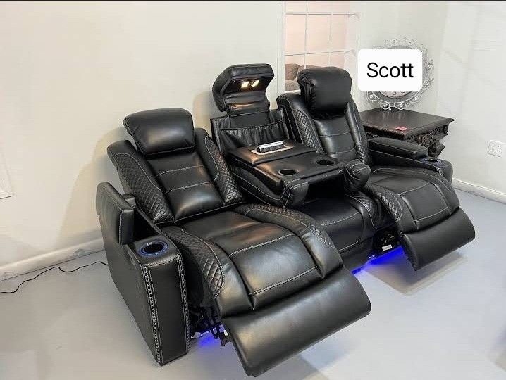 Black Leather Sofa Loveseat Recliner Power Controlled Led Lighted Movie Couch