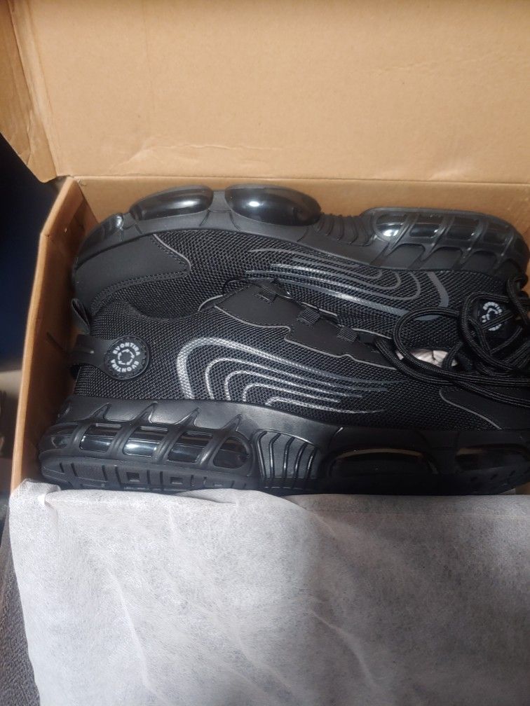 Made in China, size 14 but seem a little small. Never worn, they are to narrow for my feet.
