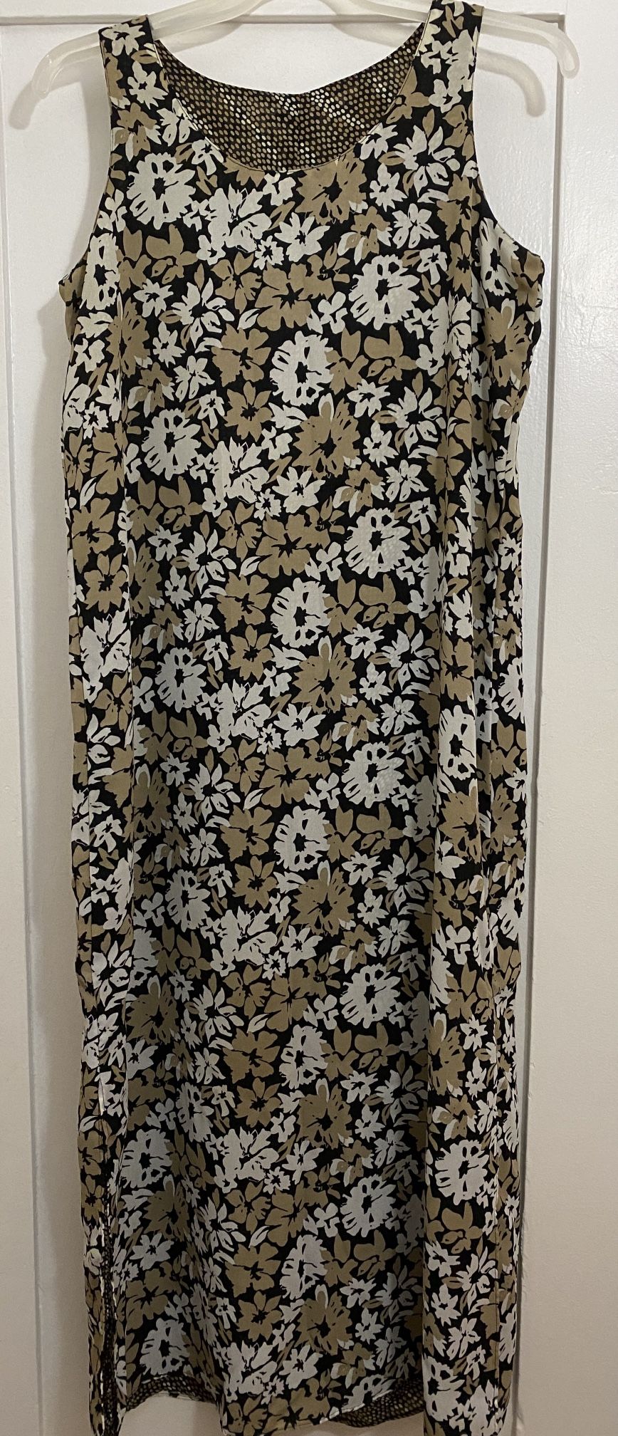 Reversible dress Floral pattern Polka dot pattern Size L Vestido two tan brown satin silk ling maxi dress calf