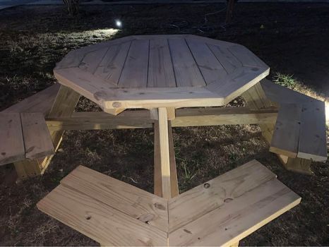 Octagon picnic table has been just built and is ready to go. It was built by treated lumber. Asking $600obo
